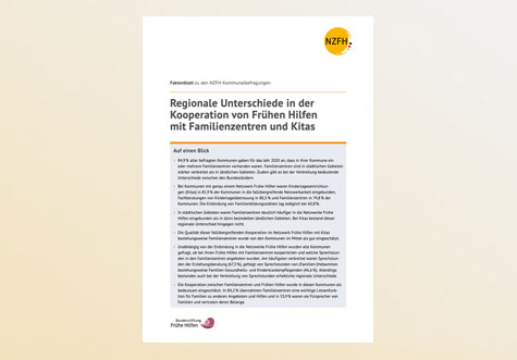 Das Faktenblatt fasst Ergebnisse der NZFH-Kommunalbefragungen zu regionalen Unterschieden in der Kooperation von Frühen Hilfen mit Familienzentren und Kitas zusammen.