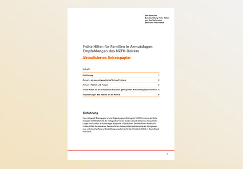 Der Beirat der Bundesstiftung Frühe Hilfen und des NZFH formuliert Empfehlungen für die (Familien-)Politik in Deutschland. Grundlage sind Ausführungen zu Frühen Hilfen als innovativem Baustein für die Prävention von Armut und Armutsfolgen.
