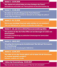 | Modul 5 | Wie gelingt die Umsetzung des Kontaktformats? Was läuft gut? Wo brauchen wir Unterstützung? | 18. Februar 2027 (online) |