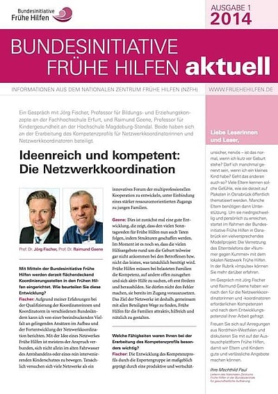 In der ersten Ausgabe 2014 des Informationsdienstes Bundesinitiative Frühe Hilfen aktuell geben die beiden Experten Prof. Dr. Jörg Fischer und Prof. Dr. Raimund Geene unter anderem Auskunft darüber, welche Kompetenzen Netzwerkkoordinierende in den Frühen Hilfen benötigen und welchen Nutzen die Familien von einer guten Netzwerkkoordination haben.