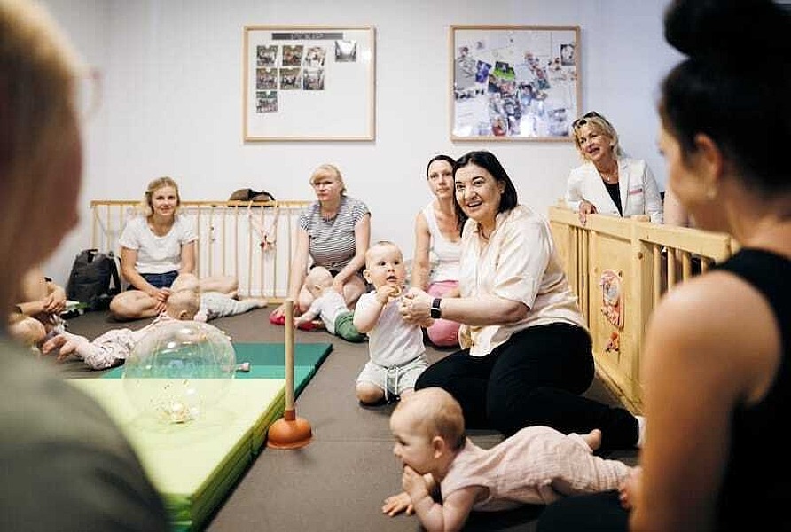 Die Nationale Kinderchancen-Koordinatorin und Parlamentarische Staatssekretärin im Bundesfamilienministerium, Ekin Deligöz, startet ihre diesjährige Kinderchancen-Tour mit einem Besuch in Doberlug-Kirchhain, Brandenburg. Zum Auftakt besuchte Deligöz die Eltern-Kind-Gruppe und die kommunale Netzwerkkoordination Frühe Hilfen beim Deutschen Roten Kreuz Kreisverband Lausitz. Gemeinsam mit Christian Jaschinski, Landrat des Landkreises Elbe-Elster und Bodo Broszinski, Bürgermeister der Stadt Doberlug-Kirchhain, tauschte sie sich mit jungen Eltern und Fachkräften zuden täglichen Herausforderungen für Familien und den Angeboten der Frühen Hilfen aus.