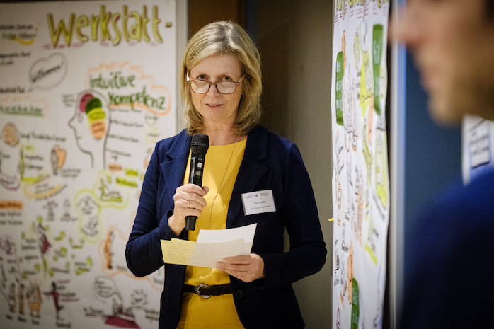 An diesem Tisch standen unter anderem die folgenden Fragen im Mittelpunkt: Welchen Beitrag kann Qualifizierung für eine erfolgreiche interdisziplinäre Zusammenarbeit leisten? Wie werden Qualifizierungsteilnehmende dazu angeregt, ihr eigenes berufliches Selbstverständnis zu reflektieren oder die Fähigkeiten der anderen involvierten Berufsgruppen kennenzulernen, zu respektieren und im Sinne der Familie einzusetzen?